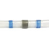 jatko tinalla 1.5-2.5mm², sininen, 10kpl blister. läpinäkyvä kutistuva polyolefinputki (1) jossa tina (2) keskellä ja värilliset (väri ilmoittaa johtokoon) tiivisteeksi sulavat raidat (3) reunoilla, hyvä sulamisnopeus ja juotostoiminto, kaikki työvaiheet yhdellä lämmityksellä, kutistumiskerroin 2:1