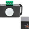 infrapunaliiketunnistin mm. sisävaloille, max virta 6A (12V), max 72W, toimintamatka 8m, automaattinen sammutus: aika säädettävissä 1-10min (1min välein). PIR: passiivinen infrapunatunnnistin, tehollinen tunnistusalue 5m, heikentynyt (ihmisen liikkeen havaitseva) tunnistusalue 8m, kupulinssin tunnistuskulma 60° (nimellinen), liikettä havaitessaan katkaisin sytyttää valot, jotka ajastin sammuttaa säädetyn ajan kuluttua automaattisesti, kiinnitysreiät 3x18mm, etäisyys 69mm, -20°C ... +60°C