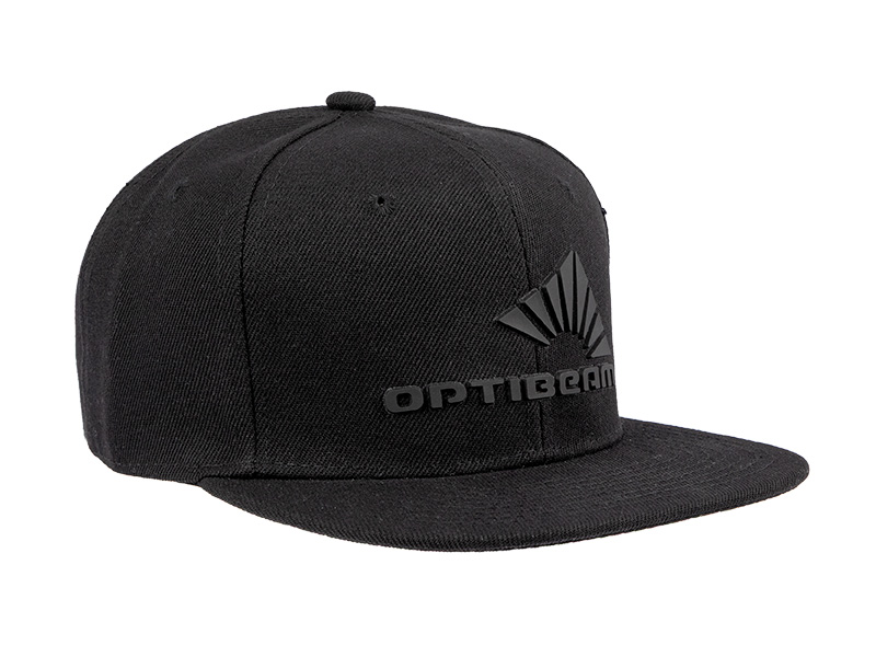 Musta lippalakki, jonka etupuolella musta Optibeam-logo 3D-painatuksena.