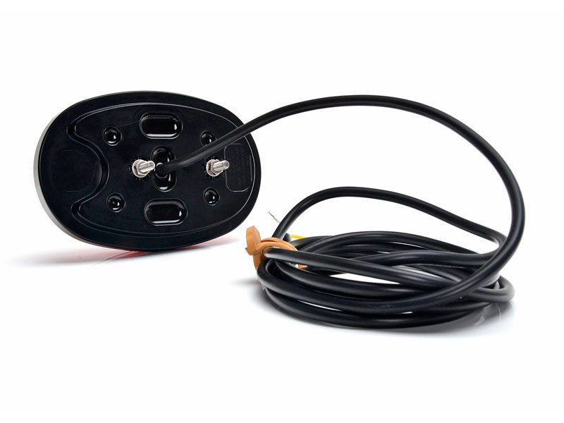 vilkku – takavalo – jarruvalo, asennus joko pystyyn tai vaakaan, voi asentaa myös tuplana, kiinnityspultit: 2 x M5, väli 45 mm. --- KYTKENTÄ: valkoinen – maa, musta – takavalo, keltainen – vilkku, punainen – jarruvalo